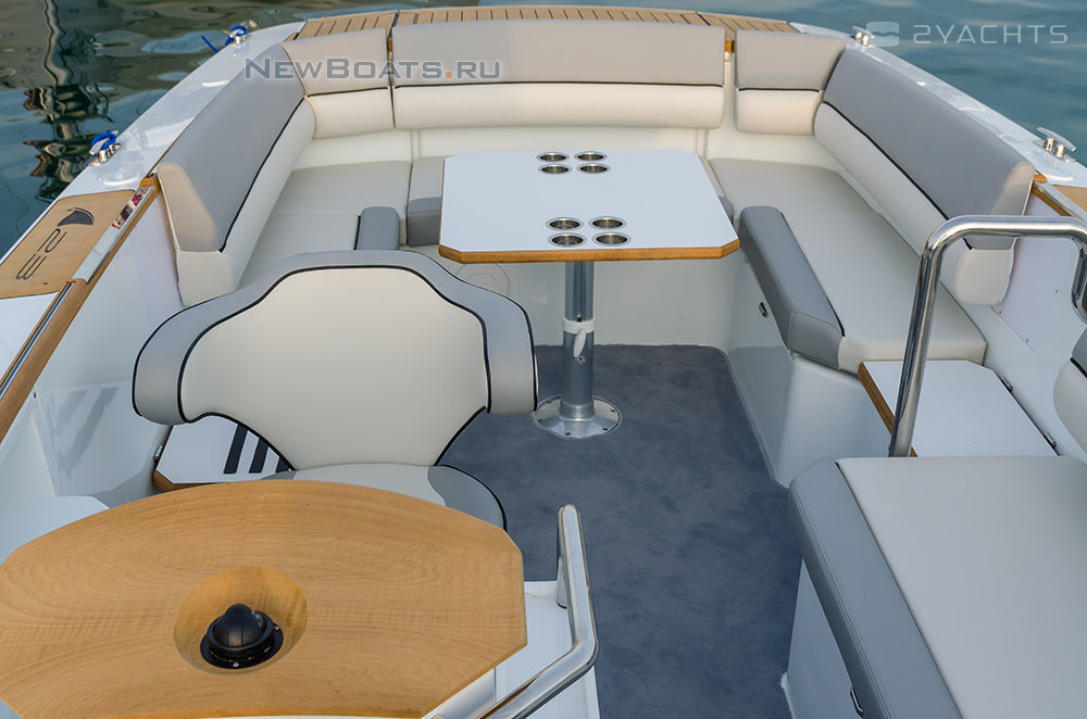 This modern boat, it combines modern and classic design elements. His element is a coastal sea area and inland waterways. The boat has a comfortable cockpit that is equipped with a refrigerator and a galley, sofa and Desk. 23 Cabin has a large bathing platform with shower and ladder, sun bathing area with high-quality pillows, a spacious cabin with two seats as standard, and our unique roof in the cabin. 23 Cabin provides everything you need for a short trip. A UNIQUE SYSTEM HARDTOP Alfa street offers a unique system with a hardtop which can be raised or lowered in just a few seconds, to ensure safety and to protect it from the weather. Version 23 Cabin is equipped with electric lifting system for the roof of the cabins. This fantastic feature allows you to increase the height of the cabin during its use, providing easy, fast ventilation. Truly unique and very beneficial feature! Available in two options, semi-displacement and planing. 23 Open displacement. Category of vessel: C Engines: Petrol, Diesel or hybrid – max 30 kW (40hp) Electric – max 10 kW (14 hp) Fuel capacity: 50 l Batteries: 12,5 kWh standard (25 kWh optional) Type: Pod Drive, Sail Drive, Outboard Specifications - Petrol, Diesel, Hybrid: Range (at cruise speed): up to 100 miles (180 km) Cruising speed: 8 knots (14 km/h) Features – Electro (25 kWh battery) The power reserve (at optimum speed 3 – 4 knots (5-7,5 km/h): up to 60 miles (100 km) Range (at cruise speed): up to 37 miles (70 km) Cruise speed: up to 6 knots (10 km/h) 23 Open – planing Category of vessel: B Engines: Petrol or Diesel, between 200 and 300 HP Fuel capacity: 270 l Type: swing-out column (Z – drive) water Jet Features Range (at cruise speed): up to 250 miles (450 km) Cruising speed: 22-26 knots (40 to 50 km/h) Maximum speed (in ideal conditions): up to 40 knots (75 km/h) Please check latest price for equipment and delivery time. Azimut POVOLZHE is the official distributor of "Alfastreet" in Russia.