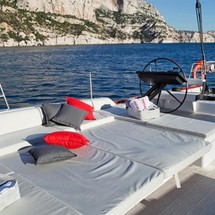 Nomad IV is a 30 m / 98′6″ luxury sailing yacht. She was built by Maxi Dolphin in 2013. With a beam of 8.3 m and a draft of 3.5 m, she has a carbon hull. The sailing yacht can accommodate 12 guests in cabins and an exterior design by Finot-Conq.