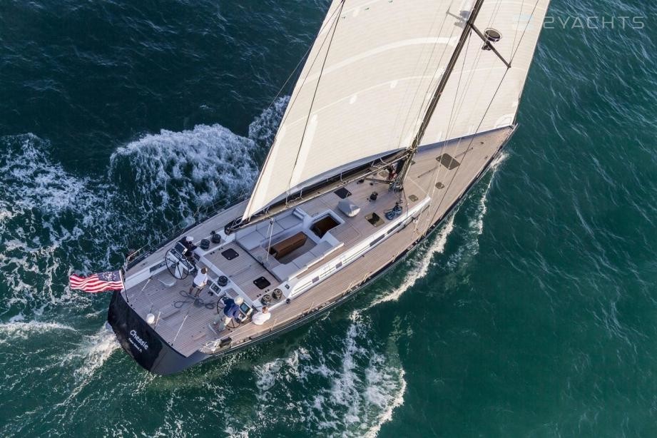 Cheesie is a 25.08 m / 82′4″ luxury sailing yacht. She was built by Nautor's Swan in 2013. With a beam of 6.08 m and a draft of 3.3 m, she has a carbon hull and carbon superstructure. She is powered by Steyr engines of 190 hp each. The sailing yacht can accommodate 6 guests in 3 cabins and an exterior design by German Frers.