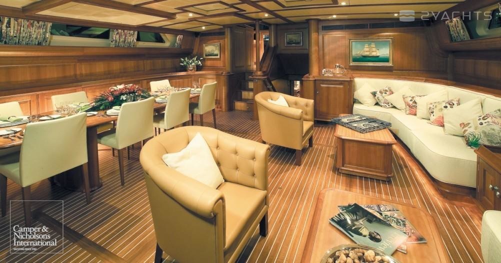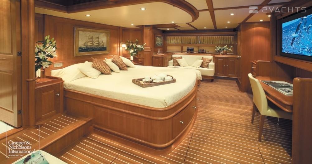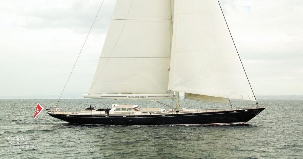 Wellenreiter is a 46.1 m / 151′3″ luxury sailing yacht. She was built by Jongert in 2003. With a beam of 8.9 m and a draft of 6.7 m, she has a steel hull and aluminium superstructure. This adds up to a gross tonnage of 254 tons. She is powered by MTU engines of 670 hp each giving her a maximum speed of 12 knots and a cruising speed of 10 knots. The sailing yacht can accommodate 7 guests in 3 cabins. The yacht was designed by Hoek.