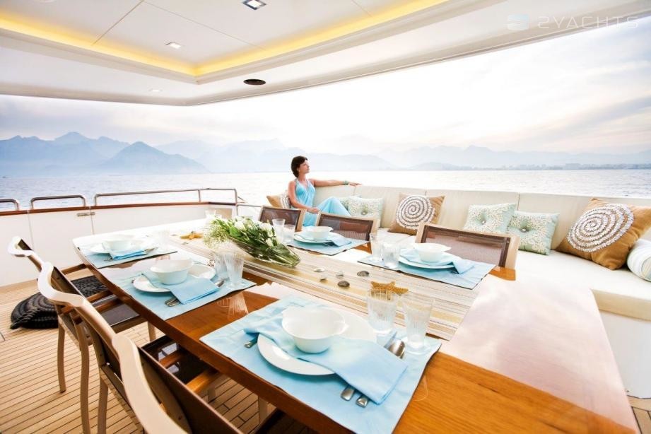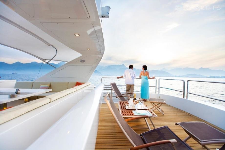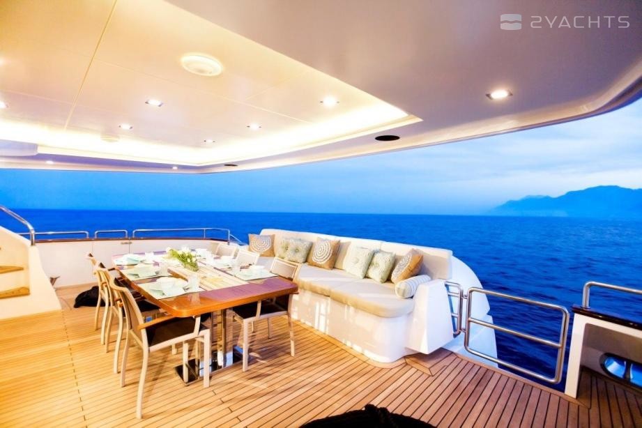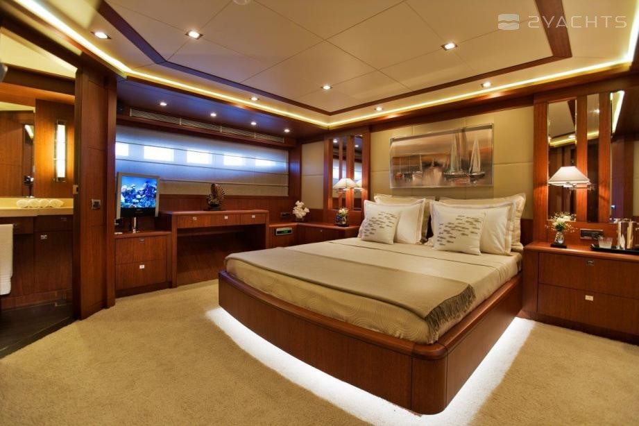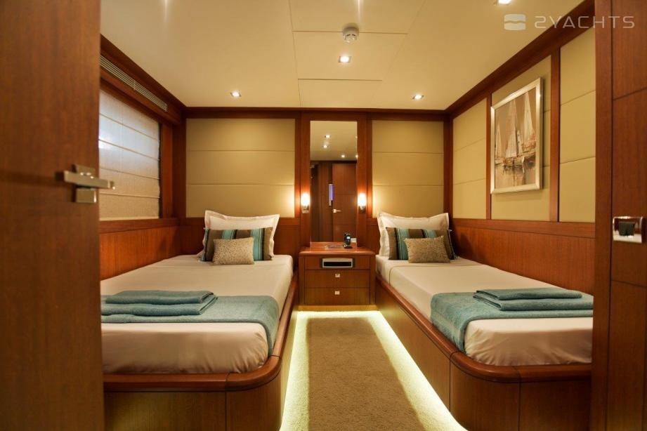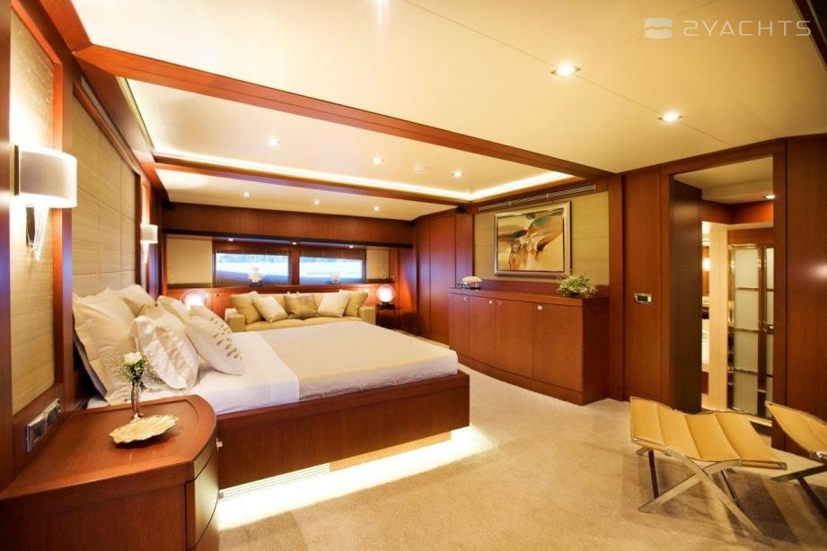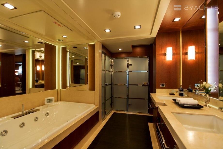 Sunkiss is a 33 m / 108′4″ luxury motor yacht. She was built by NedShip Group in 2008. With a beam of 7.9 m and a draft of 1.6 m, she has a composite hull and composite superstructure. She is powered by CAT engines of 1800 hp each and a cruising speed of 19 knots. The motor yacht can accommodate 8 guests in 4 cabins.