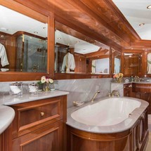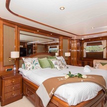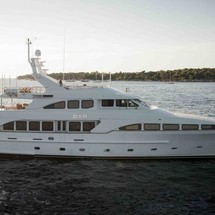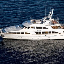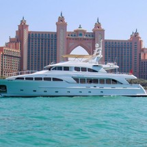 DXB is a 35.05 m / 115′0″ luxury motor yacht. She was built by Benetti in 2003. With a beam of 7.52 m and a draft of 1.98 m, she has a GRP hull and GRP superstructure. She is powered by Caterpillar engines of 1400 hp each giving her a maximum speed of 13 knots and a cruising speed of 11 knots. DXB's maximum range is estimated at 3200 nautical miles. The motor yacht can accommodate 10 guests in 5 cabins with an interior design by Francesco Zuretti and an exterior design by Stefano Righini.