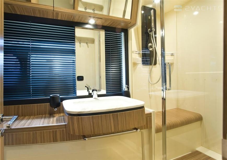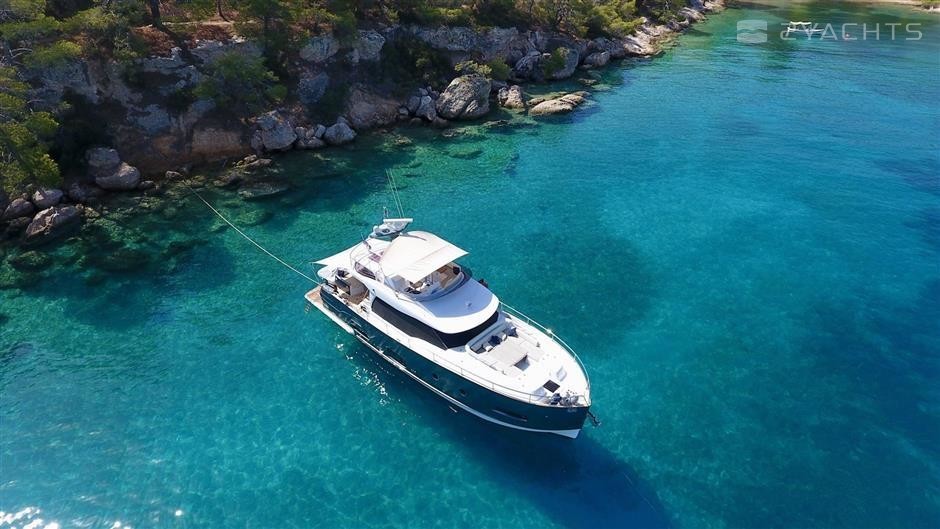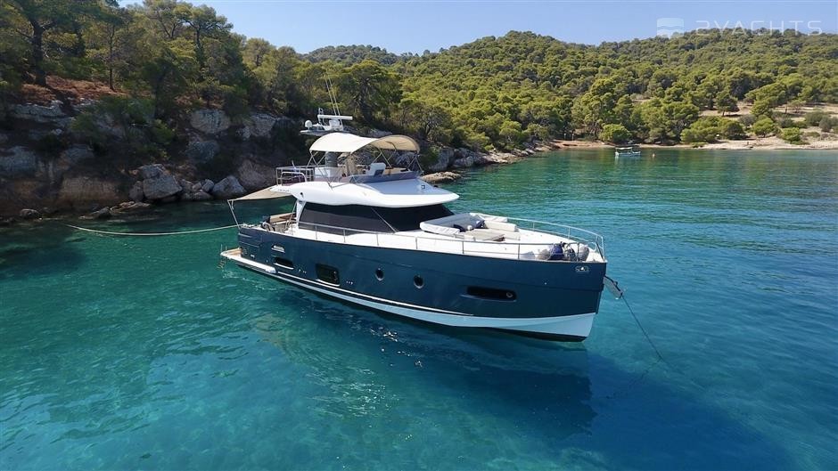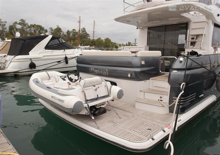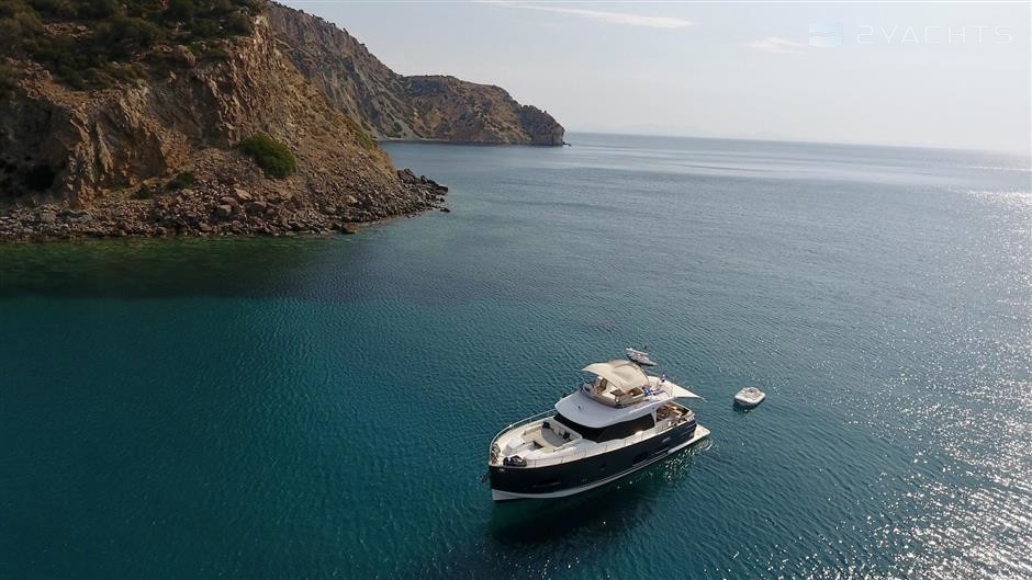 Mistral is a 16.89 m / 55′5″ luxury motor yacht. She was built by Azimut in 2016. With a beam of 4.7 m and a draft of 1.44 m, she has a GRP hull. She is powered by Cummins engines giving her a maximum speed of 22 knots and a cruising speed of 17 knots. The motor yacht can accommodate 7 guests in 4 cabins.