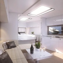 G3 is a 16.49 m / 54′2″ luxury motor yacht. She was built by VanDutch in 2014. With a beam of 4.5 m and a draft of 1.1 m, she has a GRP hull and GRP superstructure. This adds up to a gross tonnage of 32 tons. She is powered by Yanmar engines giving her a maximum speed of 38 knots and a cruising speed of 30 knots. The motor yacht can accommodate 4 guests in 2 cabins.