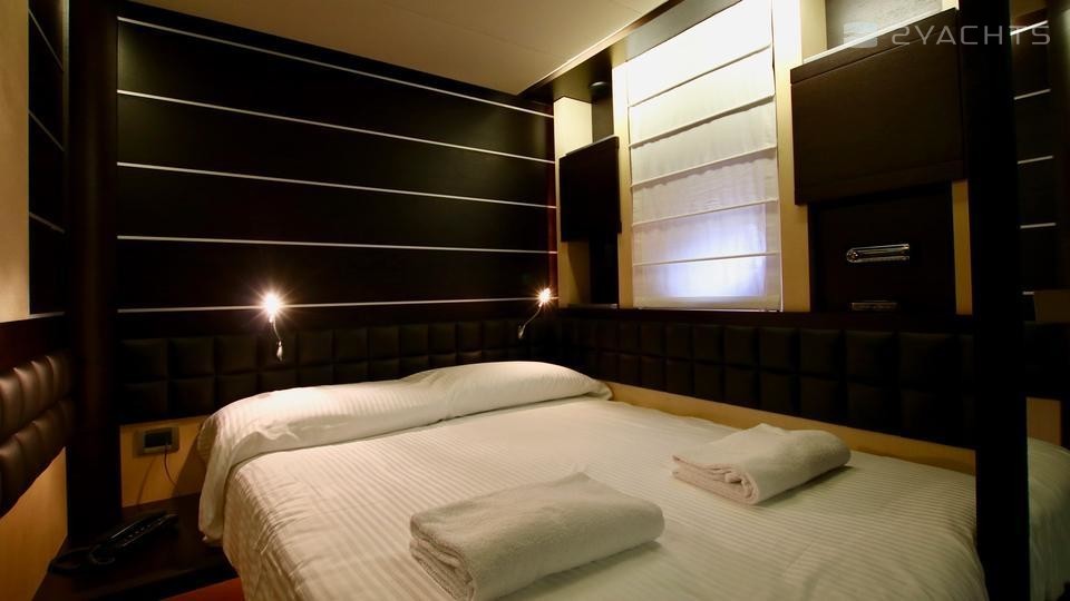 Anche No! is a 26.21 m / 86′0″ luxury motor yacht. She was built by Azimut in 2005. With a beam of 6.15 m and a draft of 1.4 m, she has a GRP hull and GRP superstructure. She is powered by MTU engines of 2000 hp each giving her a maximum speed of 42 knots and a cruising speed of 35 knots. Anche No!'s maximum range is estimated at 330 nautical miles. The motor yacht can accommodate 8 guests in 4 cabins.