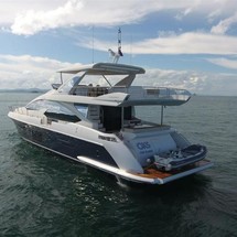 Oks is a 25.2 m / 82′9″ luxury motor yacht. She was built by Azimut in 2016. With a beam of 6.17 m and a draft of 1.73 m, she has a GRP hull. This adds up to a gross tonnage of 64 tons. She is powered by MAN engines of 1550 hp each giving her a maximum speed of 29 knots and a cruising speed of 24 knots. The motor yacht can accommodate 8 guests in 4 cabins.