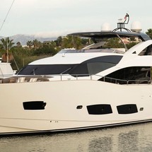 Brava is a 28.15 m / 92′5″ luxury motor yacht. She was built by Sunseeker in 2013. With a beam of 6.5 m and a draft of 2.05 m, she has a GRP hull and GRP superstructure. This adds up to a gross tonnage of 76 tons. She is powered by MTU engines giving her a maximum speed of 29 knots and a cruising speed of 23 knots. Brava's maximum range is estimated at 400 nautical miles. The motor yacht can accommodate 8 guests in 4 cabins.
