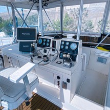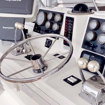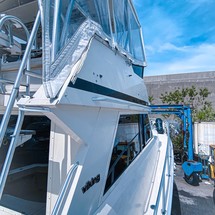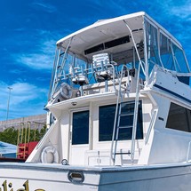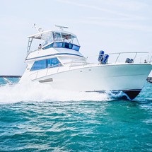 The 41" Viking Convertible is a great all in one package. You can cruise, fish and entertain in style. The cockpit and cabin designs allow for comfortable seating. This one cabin model sleeps five. Smooth enough ride to cook a meal while under power with help of the generator. Limited salt water exposure, fresh water for past 10+ years. Professional maintainenance of Twin Turbo Charged Diesel Engines and air conditioner.