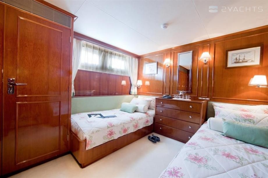Monaco is a 38 m / 124′9″ luxury motor yacht. She was built by Feadship in 1982. With a beam of 7 m and a draft of 3 m, she has a steel hull and steel superstructure. She is powered by engines giving her a maximum speed of 12 knots and a cruising speed of 10 knots. The motor yacht can accommodate 8 guests in 4 cabins and an exterior design by De Voogt.