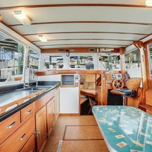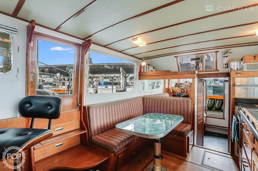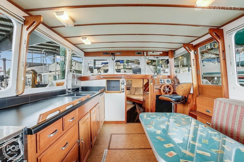 Beautiful liveaboard trawler available with the covered moorage slip, and liveaboard status.