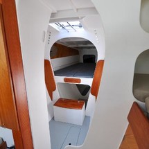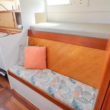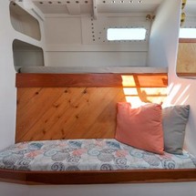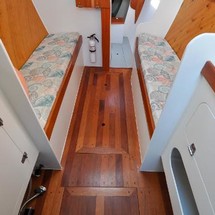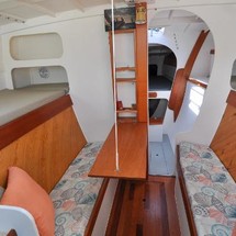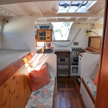 This custom built “40” foot trimaran sailboat was designed by John Marples specifically for blue water cruising. She is fast, and easily handled with live aboard accommodations for a couple. There is additional space for crew and guests in a private aft cabin. Kolea is the most recent of the Marples “Fast Cruiser” designs. She is an updated and larger sister of the CC-37 FC (winner of the OSTAR). The three monocoque wood epoxy hulls were vacuum bagged and cold molded utilizing WEST SYSTEM epoxy. Her “Constant Camber” construction technique eliminates interior framing reducing weight and increasing strength. Kolea was professionally built in Paul Rollins boat shop and first launched in 2019." ~ Owners Comments