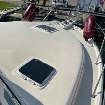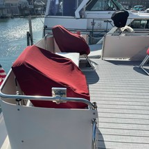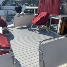 Brand new infinity woven carpet on bridge and deck. 3 deck chairs. Portable Propane grill.