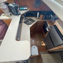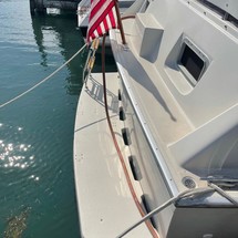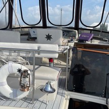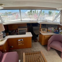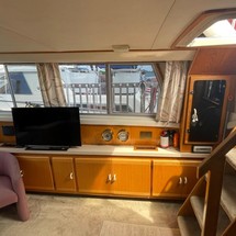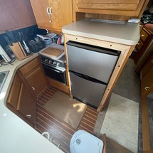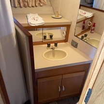 Princess electric stove and oven, Microwave, Coffee maker, Refridge/freezer. Flat screen TV. Bluetooth and CD mounted at helm, Jensen with CD player mounted in cabin. 2 electric heads (toilets). 2 showers. Heat/Air conditioning: Two. Dometic 10, 000 Btu below aft dinette seat and 10,000 Btu Marine Air Systemsbelow aft cabin vanity.