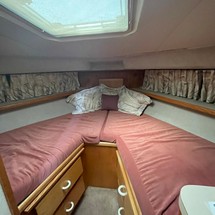 V berths forward.Convertible dinette to starboard.Double berth in aft cabin.Sleeper sofa and occasional chair in salon.Captains chair at helm.Two pedestal seats in companion positions.Padded bench across aft of bridgeTwo deck chairs.