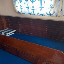 With two berths in the bow, a double berth in the aft cabin and room for two in the salon, this boat will sleep six adults.