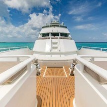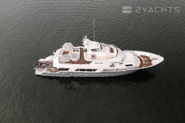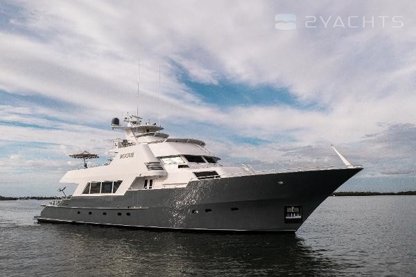 ROGUE, 105' custom expedition yacht. Made in the USA - highly customized and refit. Originally built for extended cruises exploring the Pacific waters and islands far off Mexico. She benefits from having undergone numerous refits over the years, including the 3.5 million dollar refit that took place over a two-year period from 1998 to 2000. The was completely stripped and taken down down to the bare metal. Every inch of the hull was gone through - completely rejuvenated. She was not just refit but transformed - a completely new interior layout, superstructure, bow design, and extension to the transom. The extension features the tender elevator and two garages that store/launch two jet skis. Additionally, many of her main systems were completely updated, including new CAT engines, generators, wiring, plumbing, propellers, navigation electronics, ceilings, and fixtures. She was virtually reborn as a new vessel in the year 2000.