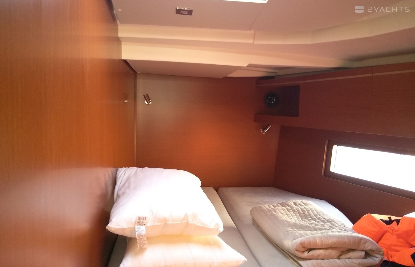 Famiglia can accommodate up to 12 people in 1 single cabin, 4 double cabins, 1 double cabin with a bunk bed and a saloon with 1 extra bed. Pillows and blankets are included in the price.