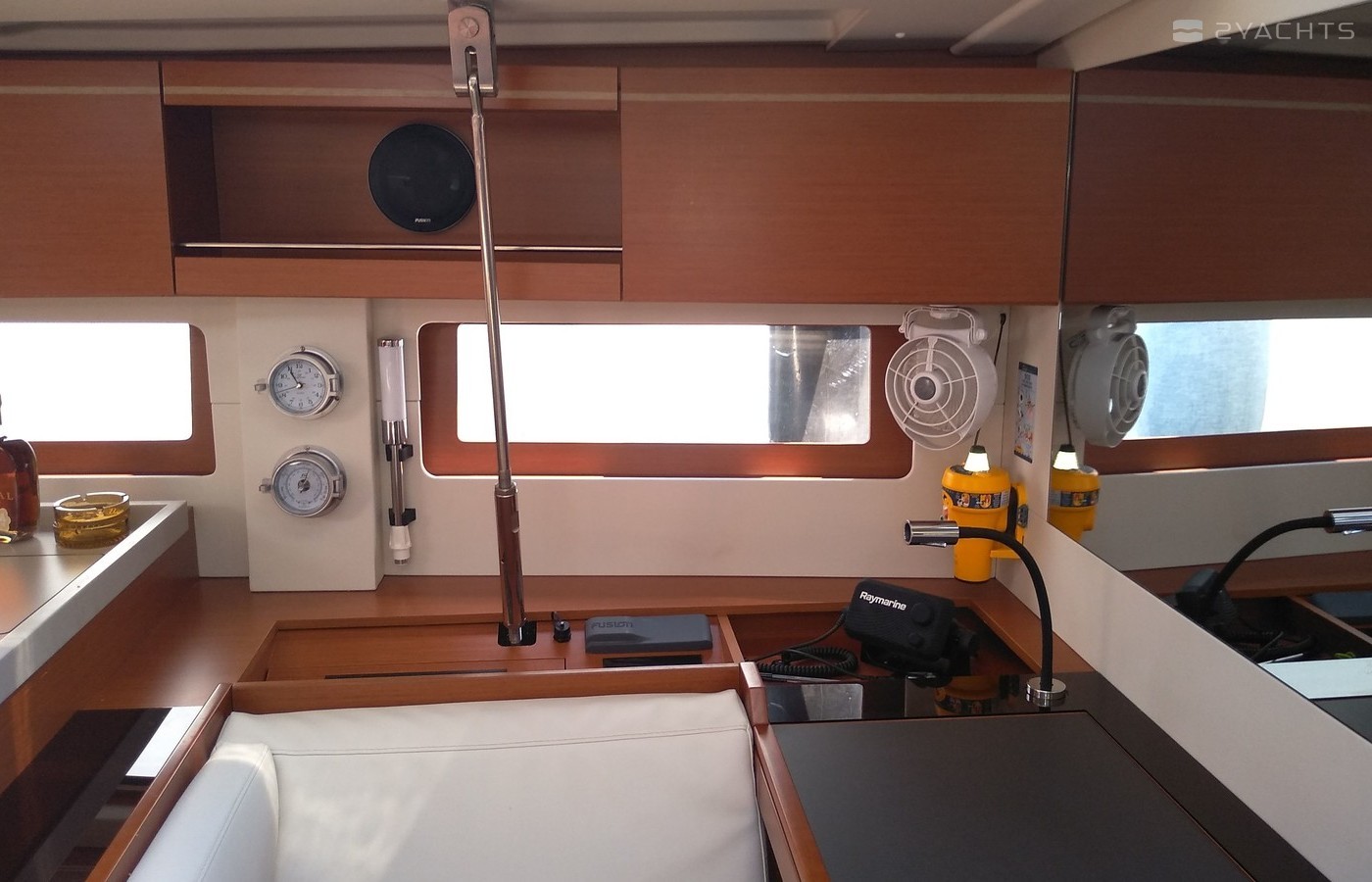 Boat equipment features rolling mainsail, radar, bimini and bow thruster. It also boasts an an audio system, outside speakers and inside speakers. The fully-equipped galley includes an oven, cooker, sink and kitchen utensils.