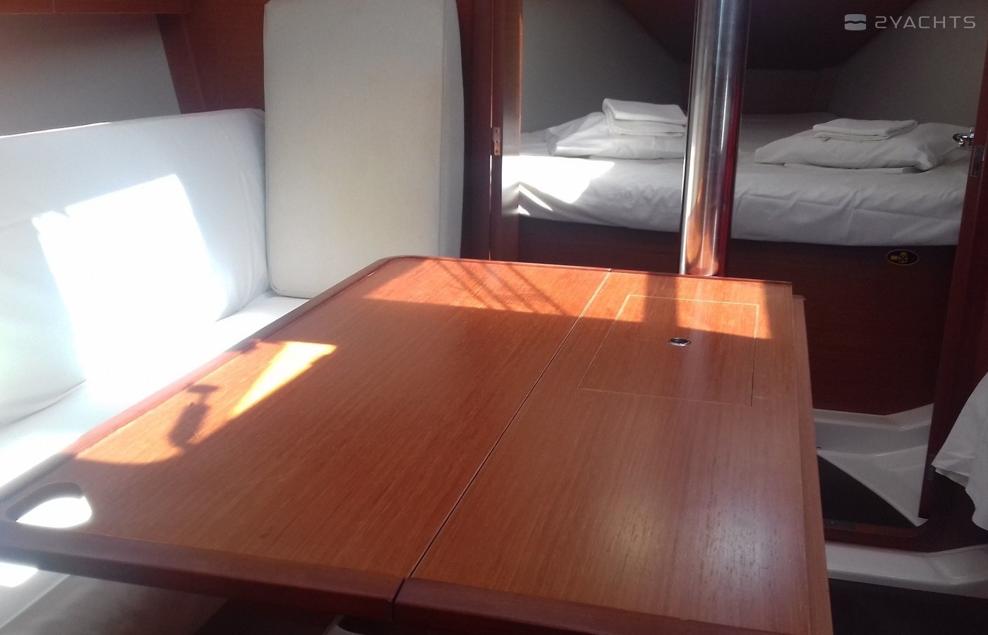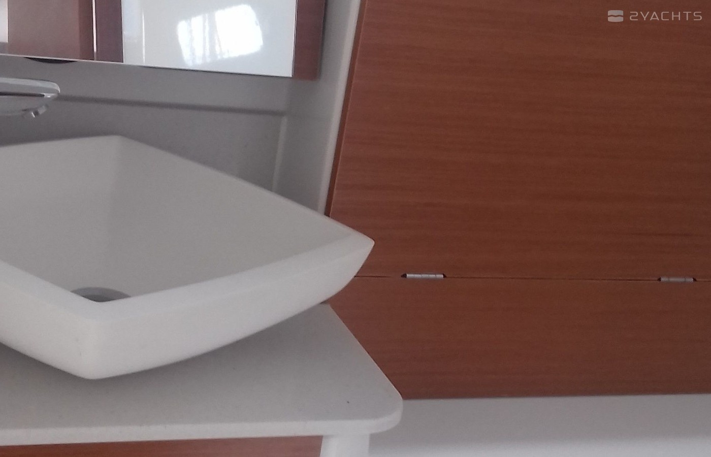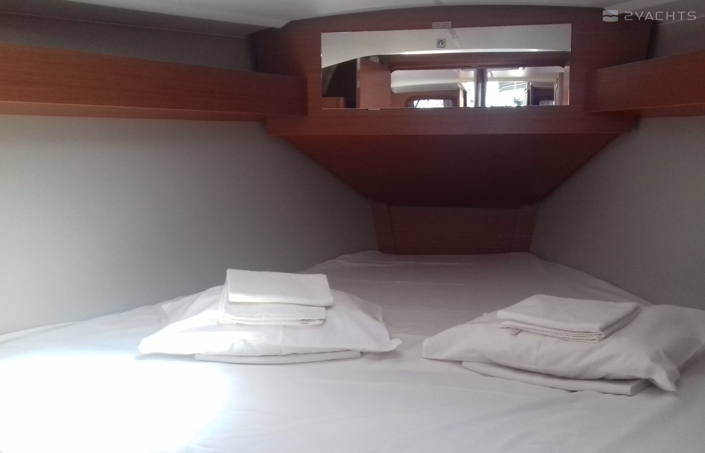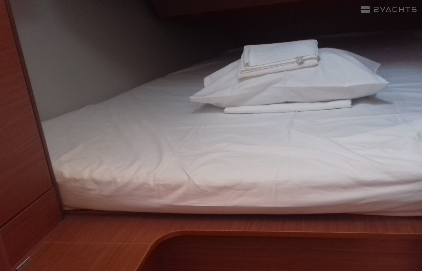 Boat equipment features rolling mainsail, salon gps plotter, bimini and bow thruster. It also boasts an an audio system, outside speakers and inside speakers. The fully-equipped galley includes an oven, cooker, sink and kitchen utensils.