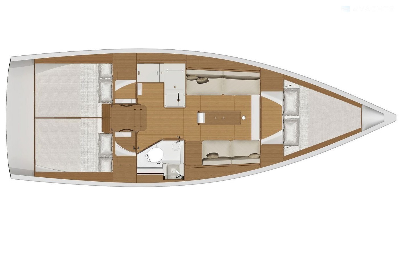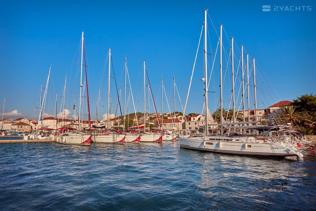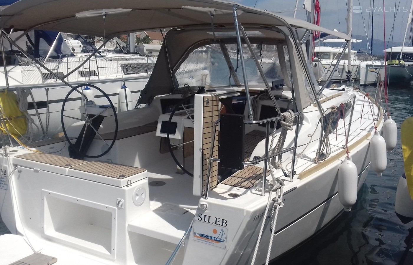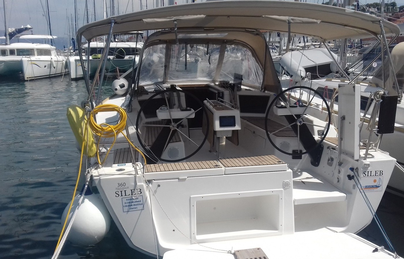 3-cabin sailing yacht Dufour 360 - Sileb was built in 2019, and it is docked in ACI Marina Trogir, Croatia.