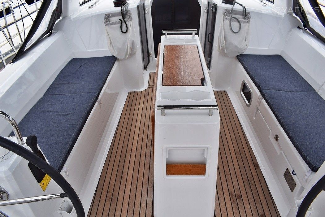 3-cabin sailing yacht Beneteau Oceanis 38 - Femi Pearl was built in 2017, and it is docked in Marina Kaštela, Croatia.