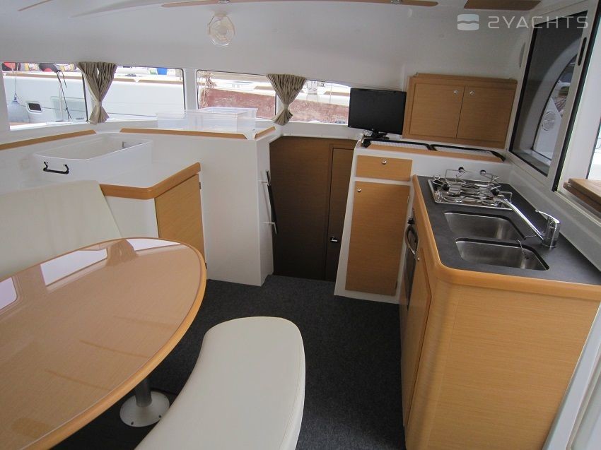 Boat equipment features classical mainsail, electric winches, generator, salon gps plotter, bimini and outside gps plotter. It also boasts a flat screen tv, air conditioning, an audio system, outside speakers and inside speakers. The fully-equipped galley includes an oven, cooker, sink and kitchen utensils.