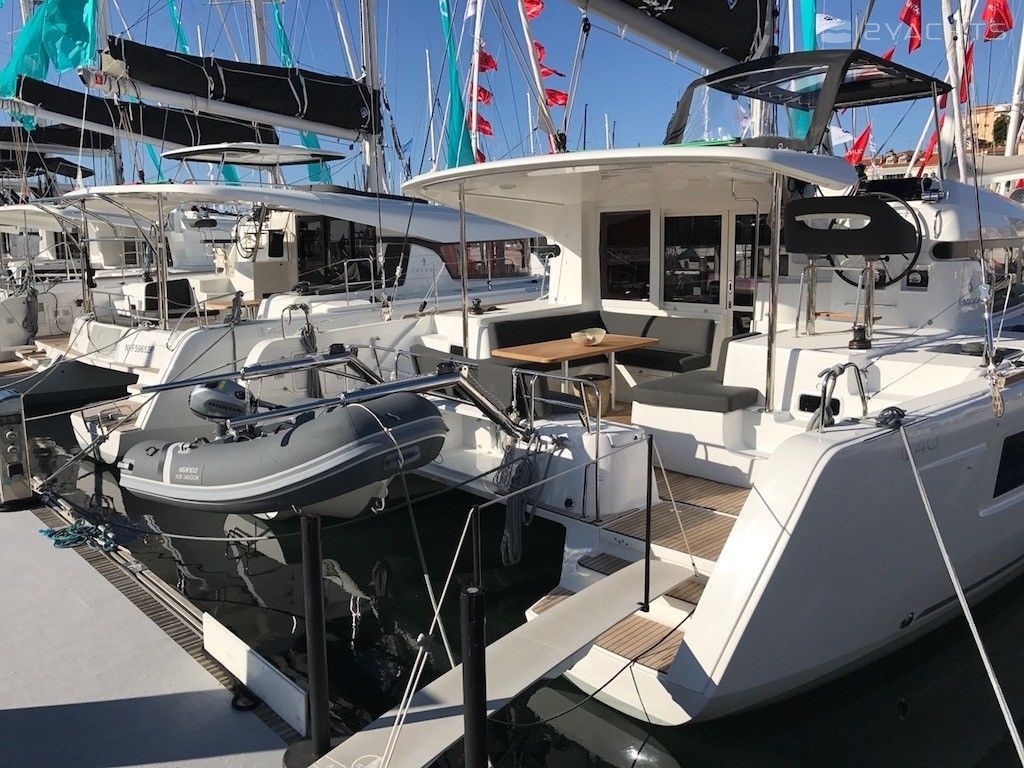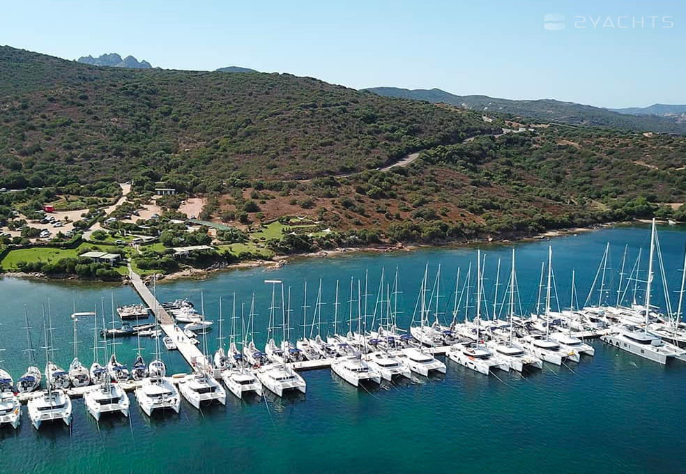 3-cabin catamaran Lagoon 40 - Saudade was built in 2018, and it is docked in Cala dei Sardi, Italy.