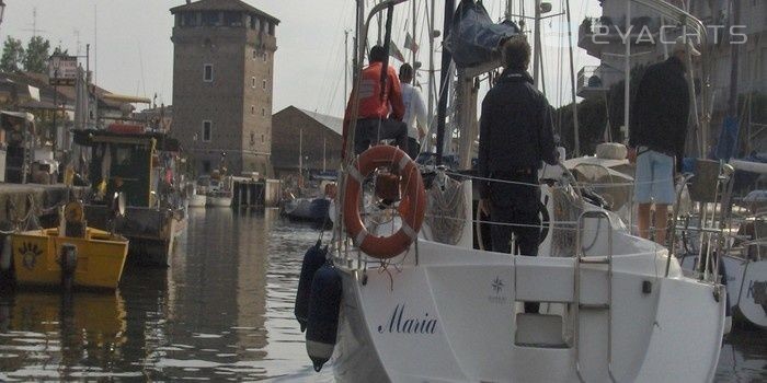 3-cabin sailing yacht Jeanneau Sun Odyssey 34 - Maria was built in 2000, (renovated in 2014,) and it is docked in Porto Canale di Cervia, Italy.