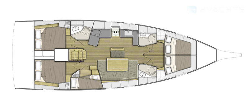 Boat equipment features Classical mainsail, Electric winches, Salon GPS plotter, Bimini and Bow thruster. It also boasts Heating, an Audio system, Outside speakers and Inside speakers. The fully-equipped galley includes Oven, Cooker, Sink and Kitchen utensils.