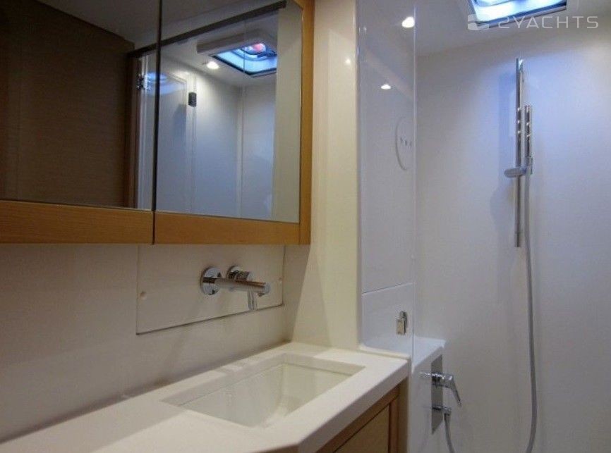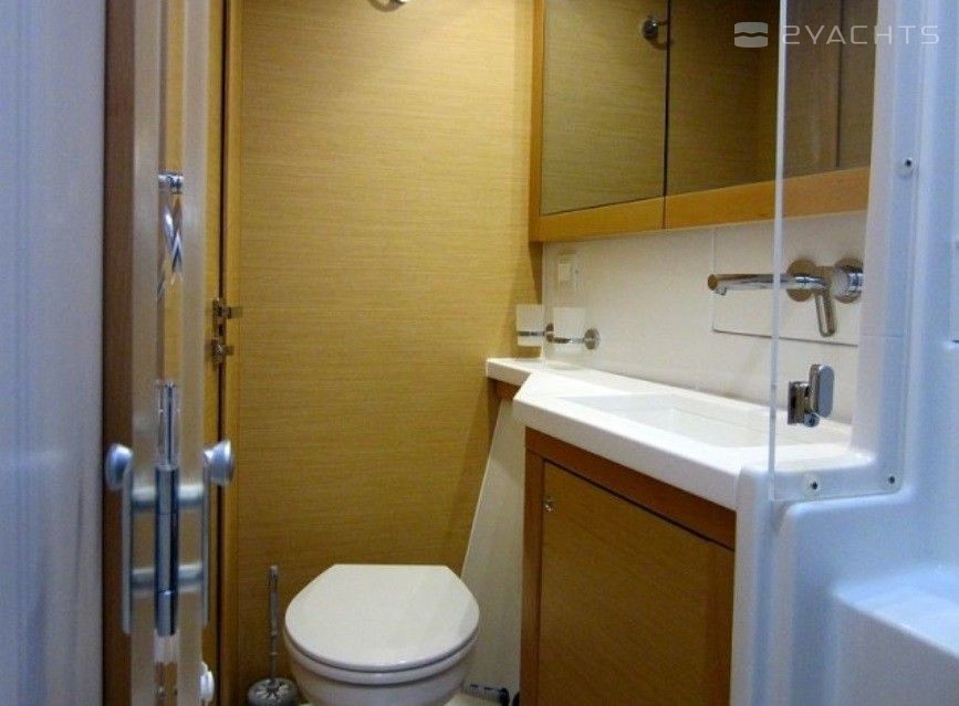 Boat equipment features classical mainsail, electric winches, radar, bimini and outside gps plotter. It also boasts a heating, an audio system, outside speakers and inside speakers. The fully-equipped galley includes an oven, cooker, sink and kitchen utensils.