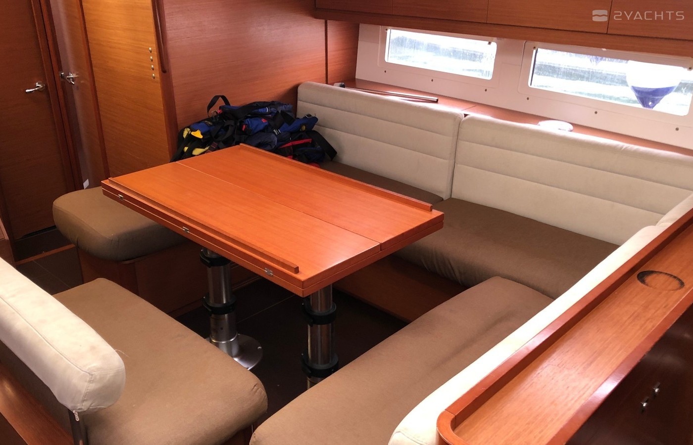 Boat equipment features rolling mainsail, electric winches, radar, bimini and bow thruster. It also boasts an an audio system, outside speakers and inside speakers. The fully-equipped galley includes an oven, cooker, sink and kitchen utensils.
