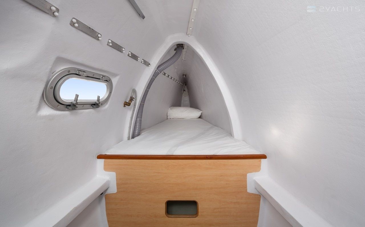 Poevasion can accommodate up to 5 people in 1 single cabin and 2 double cabins with a bunk bed. Pillows and blankets are included in the price.