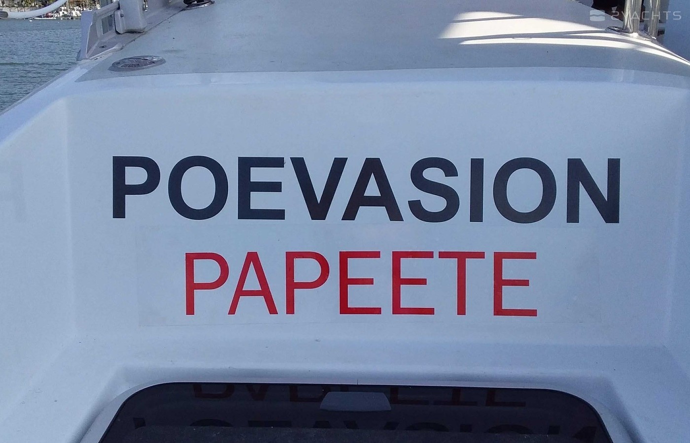 This catamaran is operated by the charter company Poe Charter.