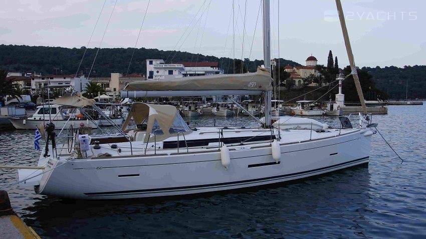 4-cabin sailing yacht Dufour 450 - Maroussa was built in 2015, and it is docked in Marina Alimos, Greece.