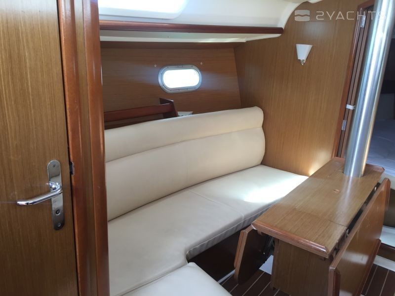 Boat equipment features rolling mainsail, salon gps plotter and bimini. It also boasts an an audio system and inside speakers. The fully-equipped galley includes an oven, cooker, sink and kitchen utensils.