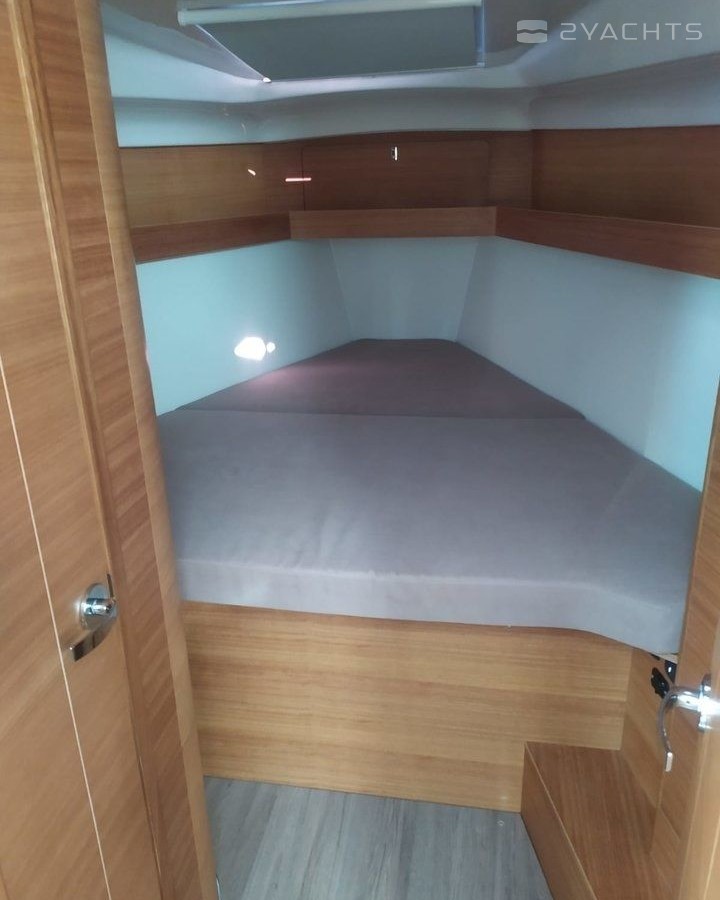Boat equipment features rolling mainsail, solar panels, bimini and bow thruster. It also boasts a flat screen tv, heating, air conditioning, an audio system and outside speakers. The fully-equipped galley includes a freezer, oven, cooker, sink and kitchen utensils.