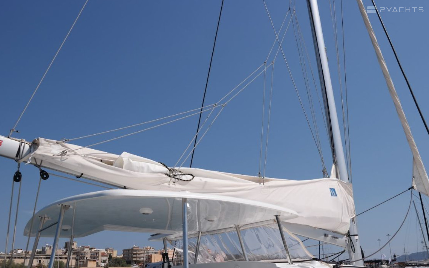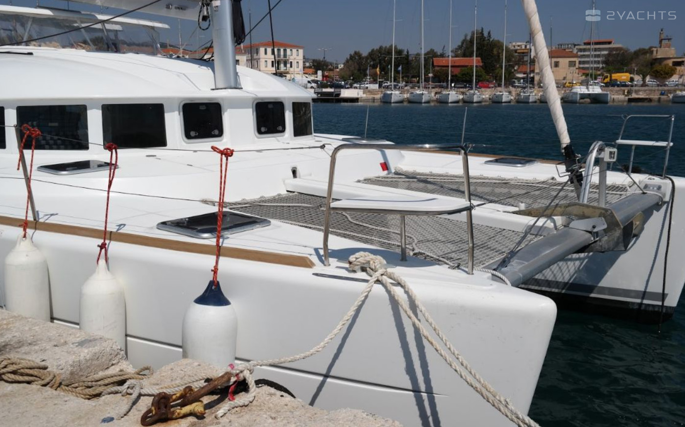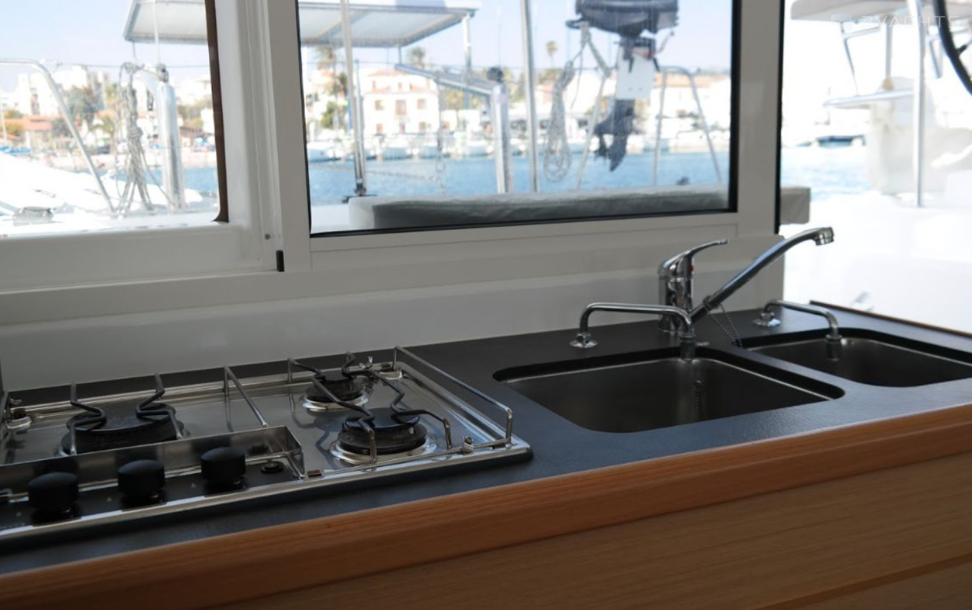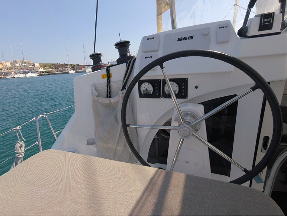 This catamaran is operated by the charter company Hellenic Yachting.