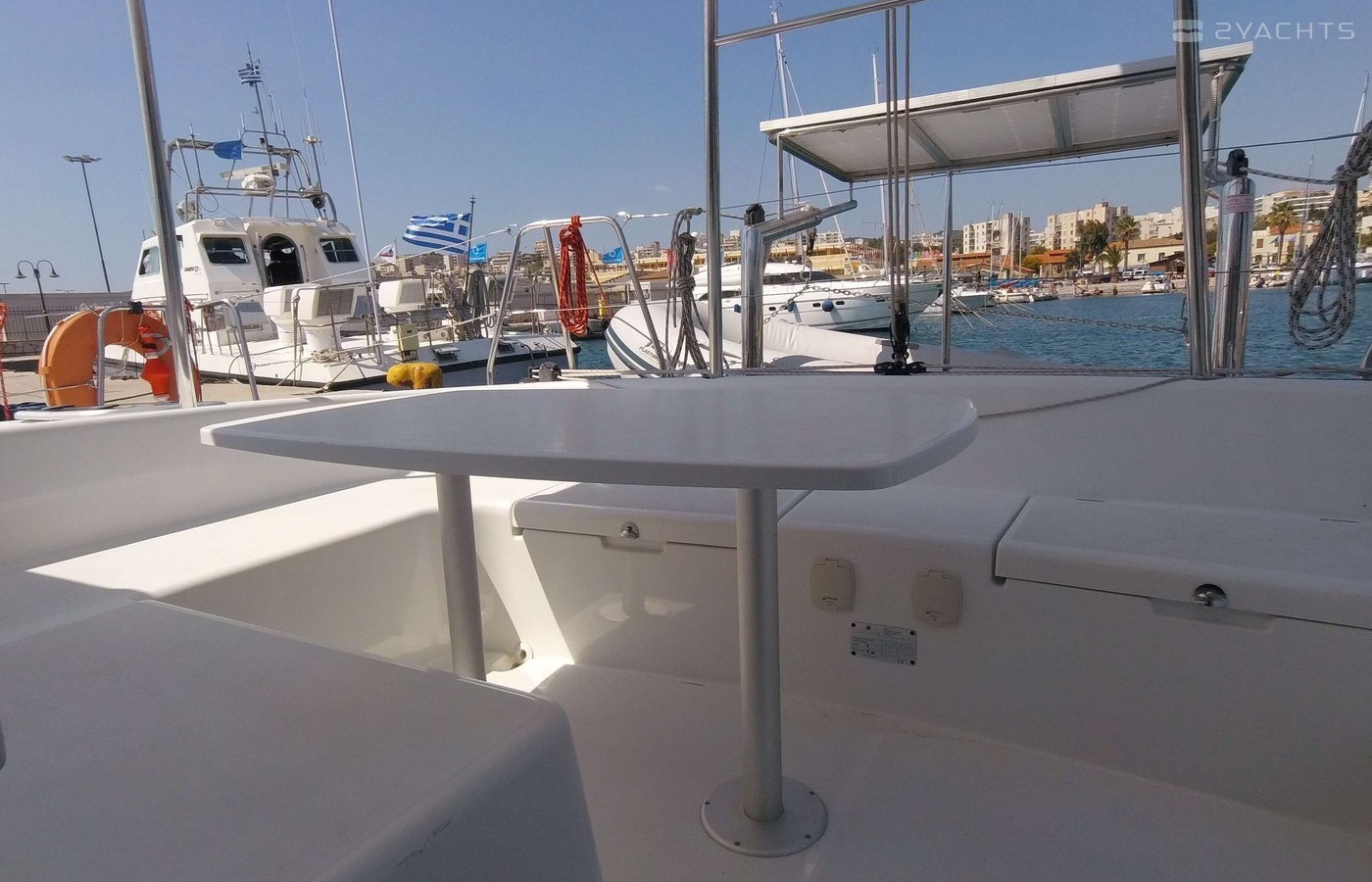 4-cabin catamaran Lagoon 380 S2 - My Elisabeth was built in 2016, and it is docked in Marina Kos, Greece.