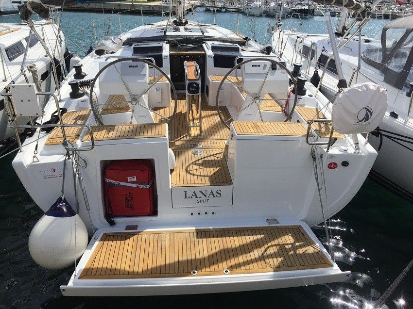 4-cabin sailing yacht Hanse 455 - Lanas was built in 2016, and it is docked in Marina Kaštela, Croatia.