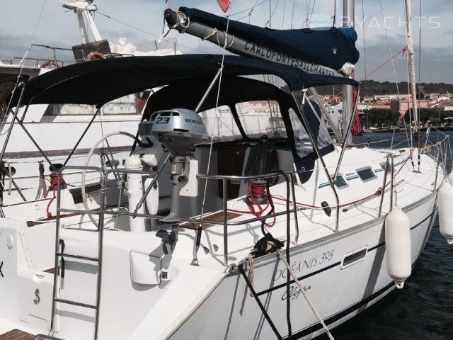 3-cabin sailing yacht Beneteau Oceanis Clipper 393 - Sabik was built in 2004, and it is docked in Marina di Carloforte, Italy.