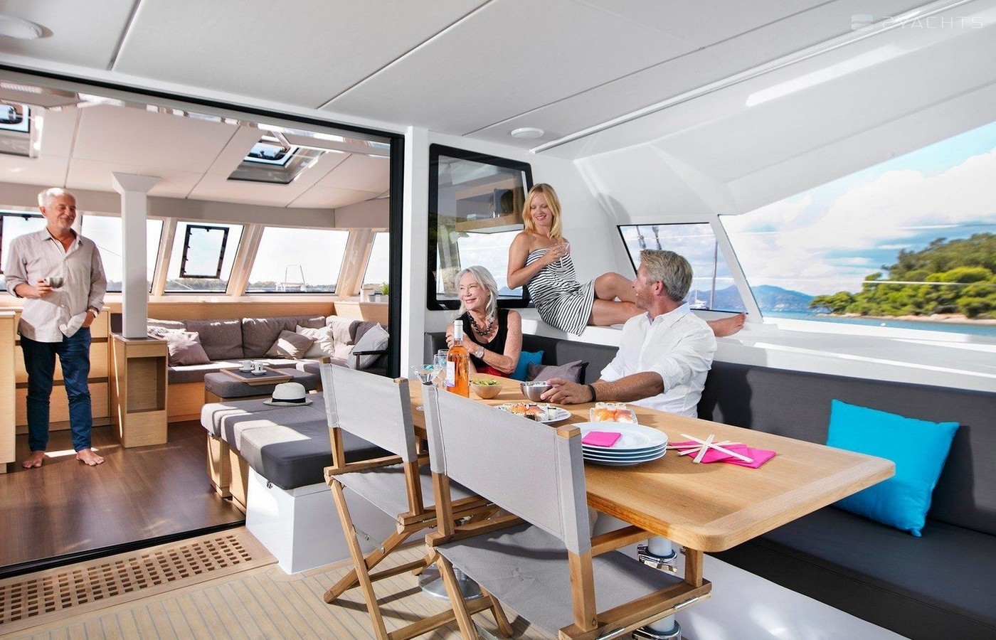 This catamaran is operated by the charter company Dream Yacht Charter.
