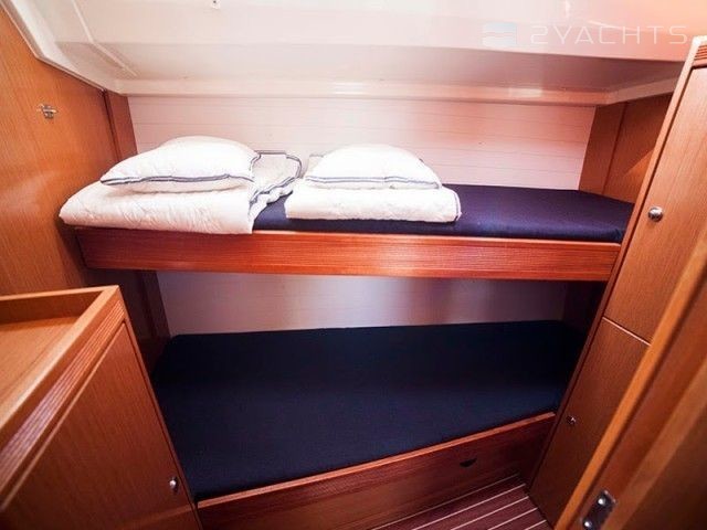 Boat equipment features rolling mainsail, salon gps plotter, bimini and bow thruster. It also boasts a flat screen tv, an audio system, dvd player and outside speakers. The fully-equipped galley includes an oven, cooker, sink and kitchen utensils.