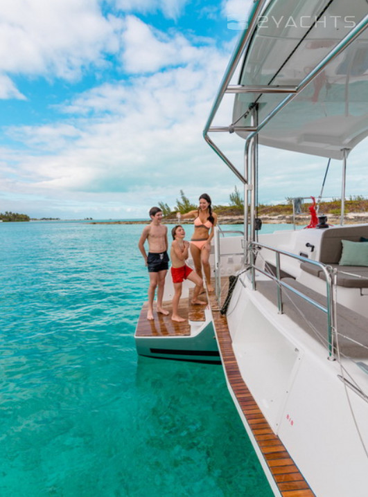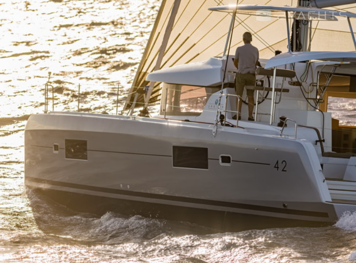 This catamaran is operated by the charter company Kiriacoulis.
