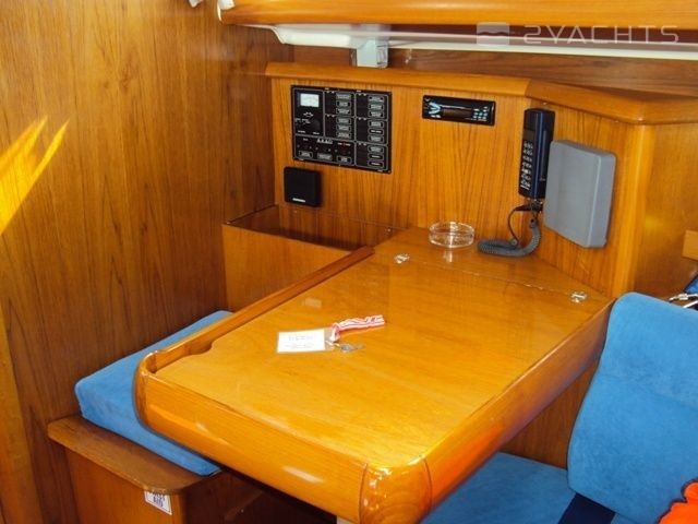 Boat equipment features rolling mainsail, salon gps plotter, bimini and bow thruster. It also boasts an an audio system and inside speakers. The fully-equipped galley includes an oven, cooker, sink and kitchen utensils.