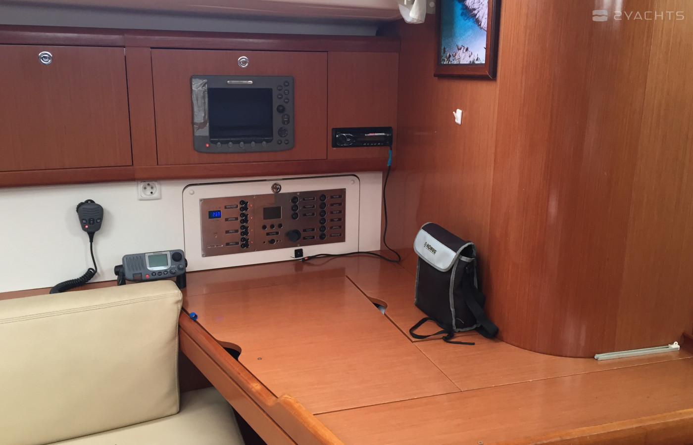Boat equipment features classical mainsail, salon gps plotter, bimini and bow thruster. It also boasts an an audio system, outside speakers and inside speakers. The fully-equipped galley includes a coffee machine, oven, cooker, sink and kitchen utensils.