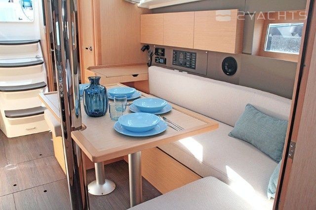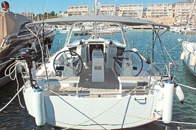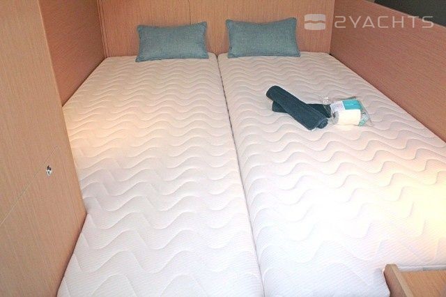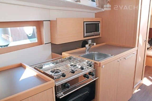 Boat equipment features classical mainsail, bimini and bow thruster. It also boasts an an audio system, outside speakers and inside speakers. The fully-equipped galley includes a microwave, freezer, coffee machine, oven and cooker.