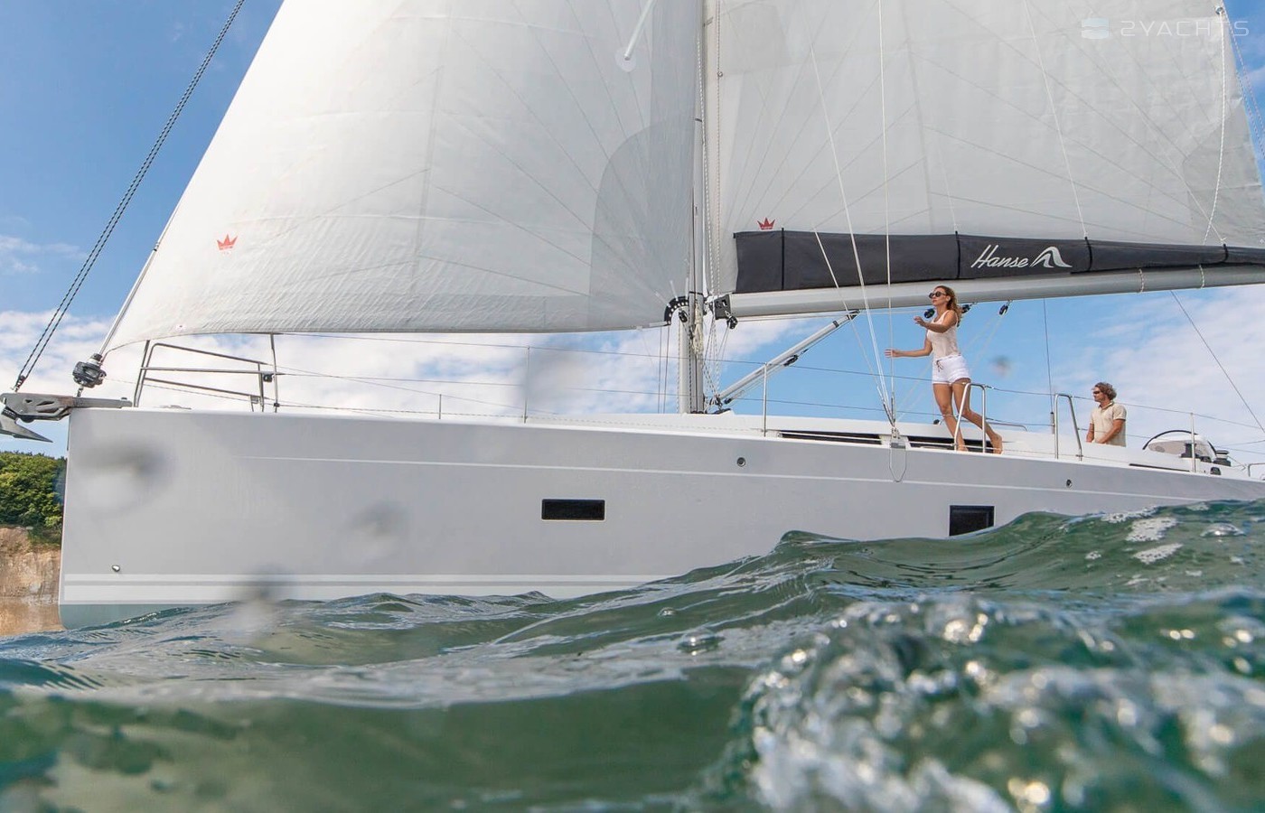 4-cabin sailing yacht Hanse 458 - C-YA was built in 2021, and it is docked in Lavrion Marina, Greece.