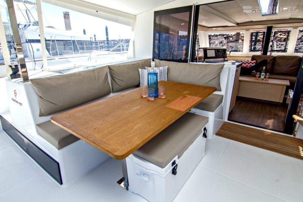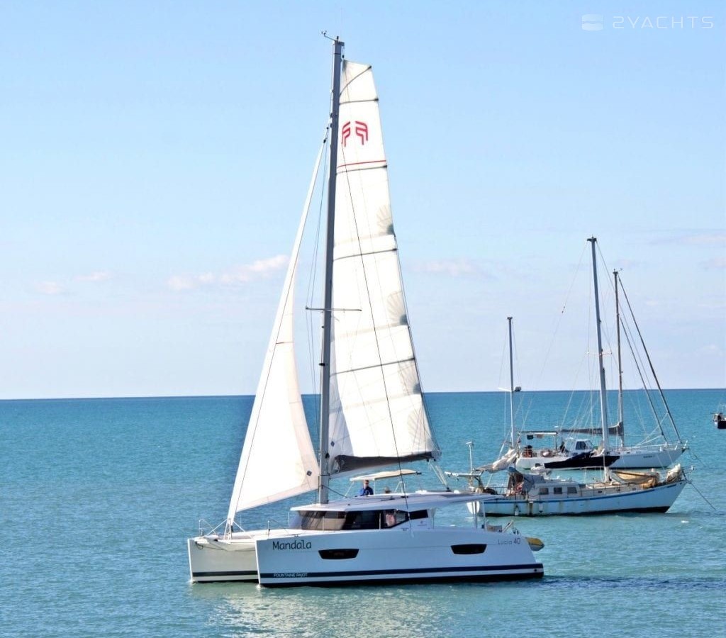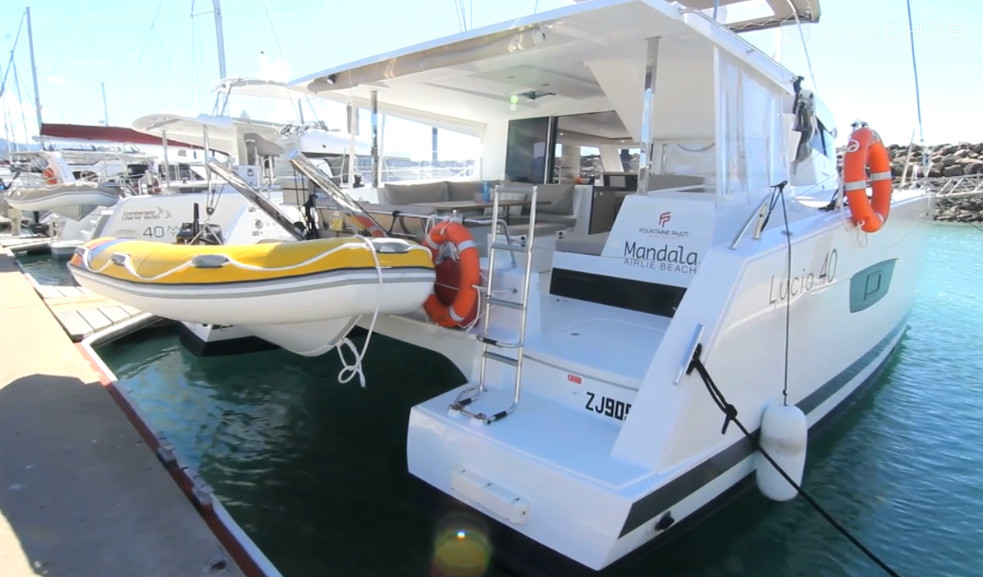 4-cabin catamaran Fountaine Pajot Lucia 40 - Mandala was built in 2017, and it is docked in Coral Sea Marina, Australia.
