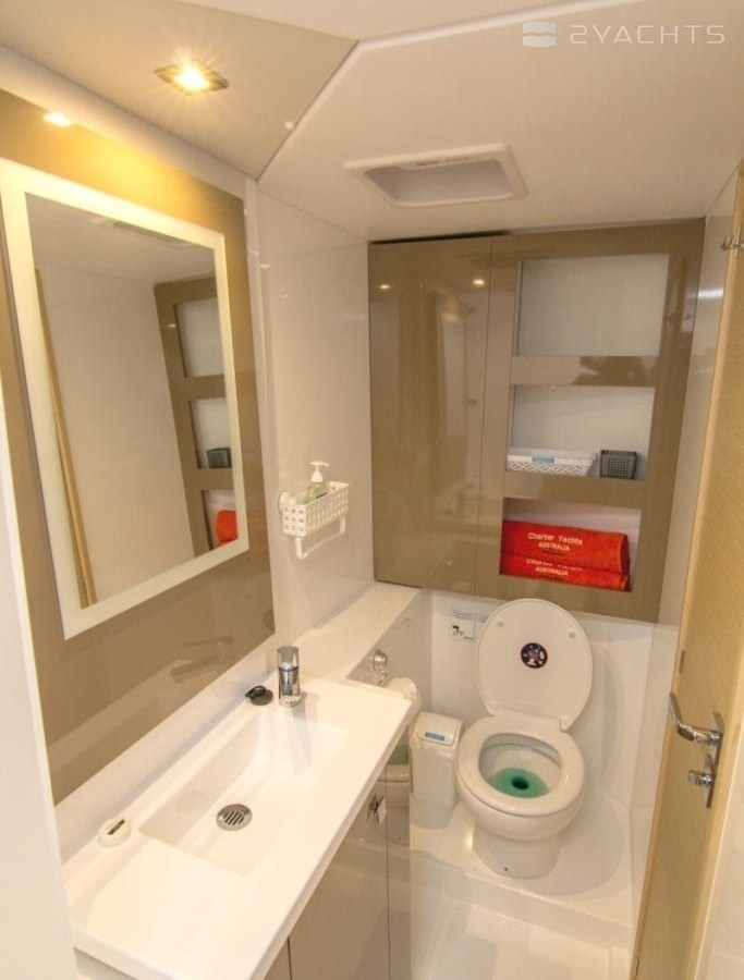 This catamaran is operated by the charter company Charter Yachts Australia.