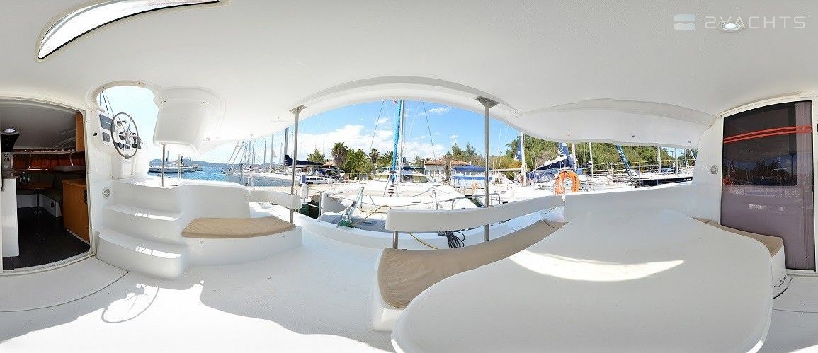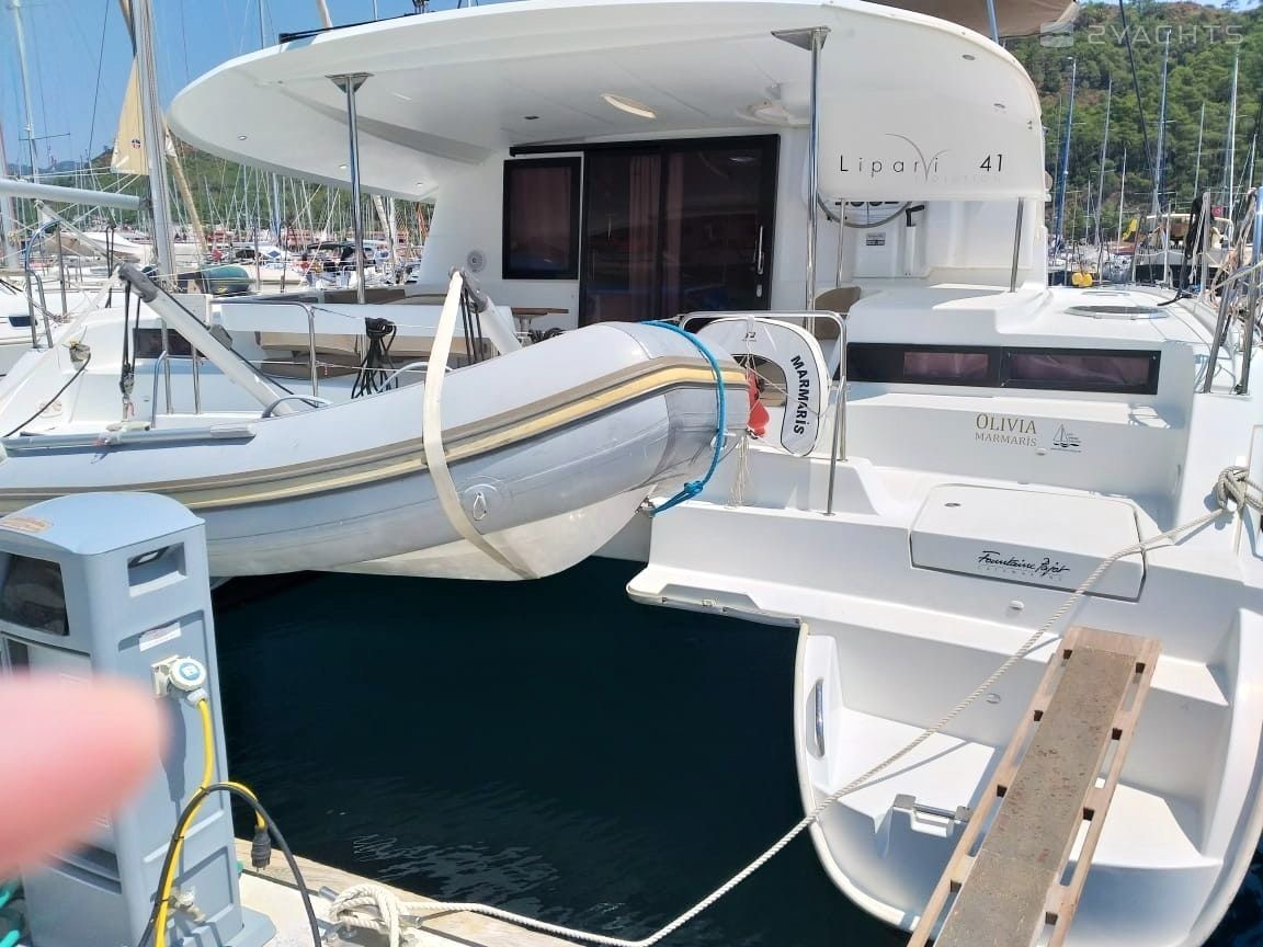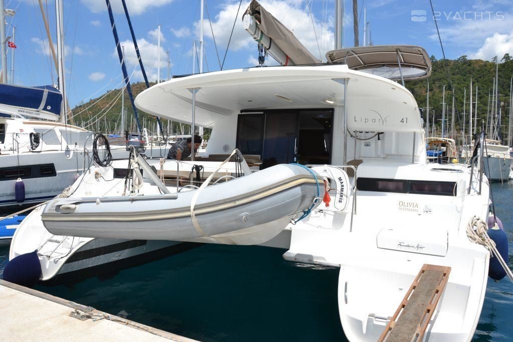 5-cabin catamaran Fountaine Pajot Lipari 41 - Olivia was built in 2014, and it is docked in Netsel Marmaris Marina, Turkey.